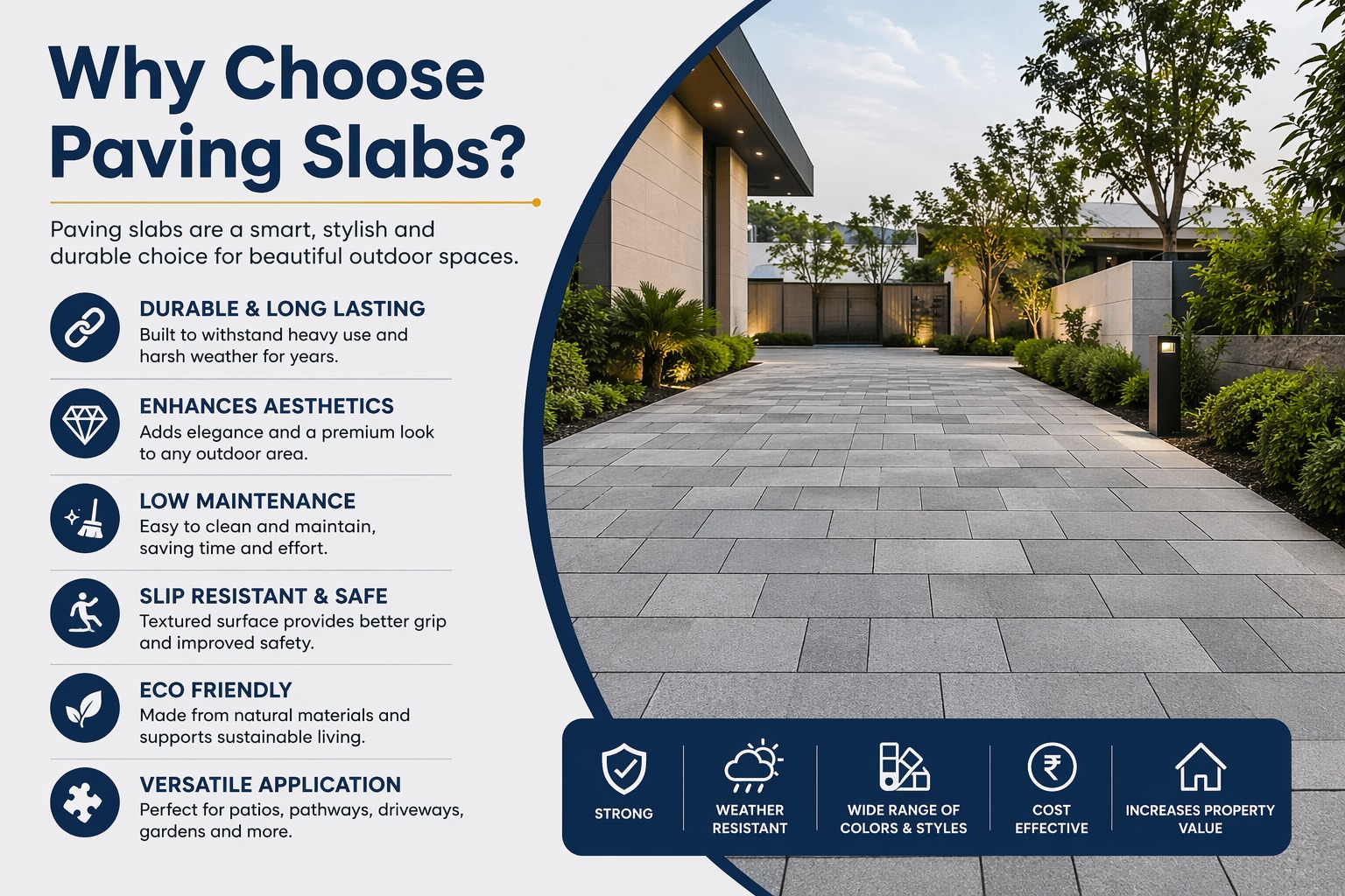 Ammaari Stones offers stylish and strong paving slabs for patios, pathways, and gardens. Our patio slabs are designed to combine beauty, durability, and easy care.